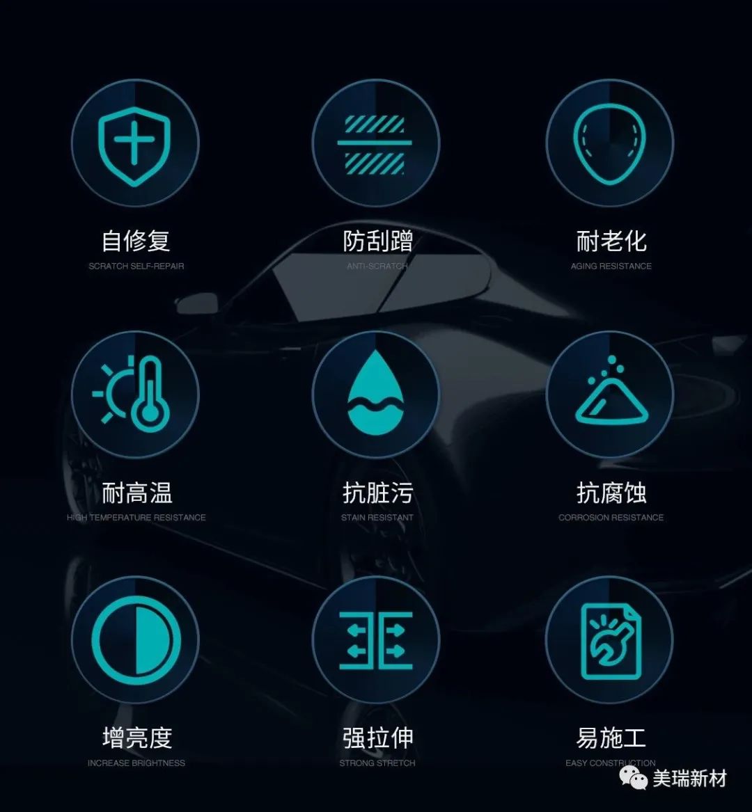 隐形车衣有PVC、TPH、TPU等材质,其中TPU材质的隐形车衣具有更高的韧性、耐磨性、耐刮擦性、更好的化学稳定性和耐高、低温性能,是众多材质中的佼佼者。
