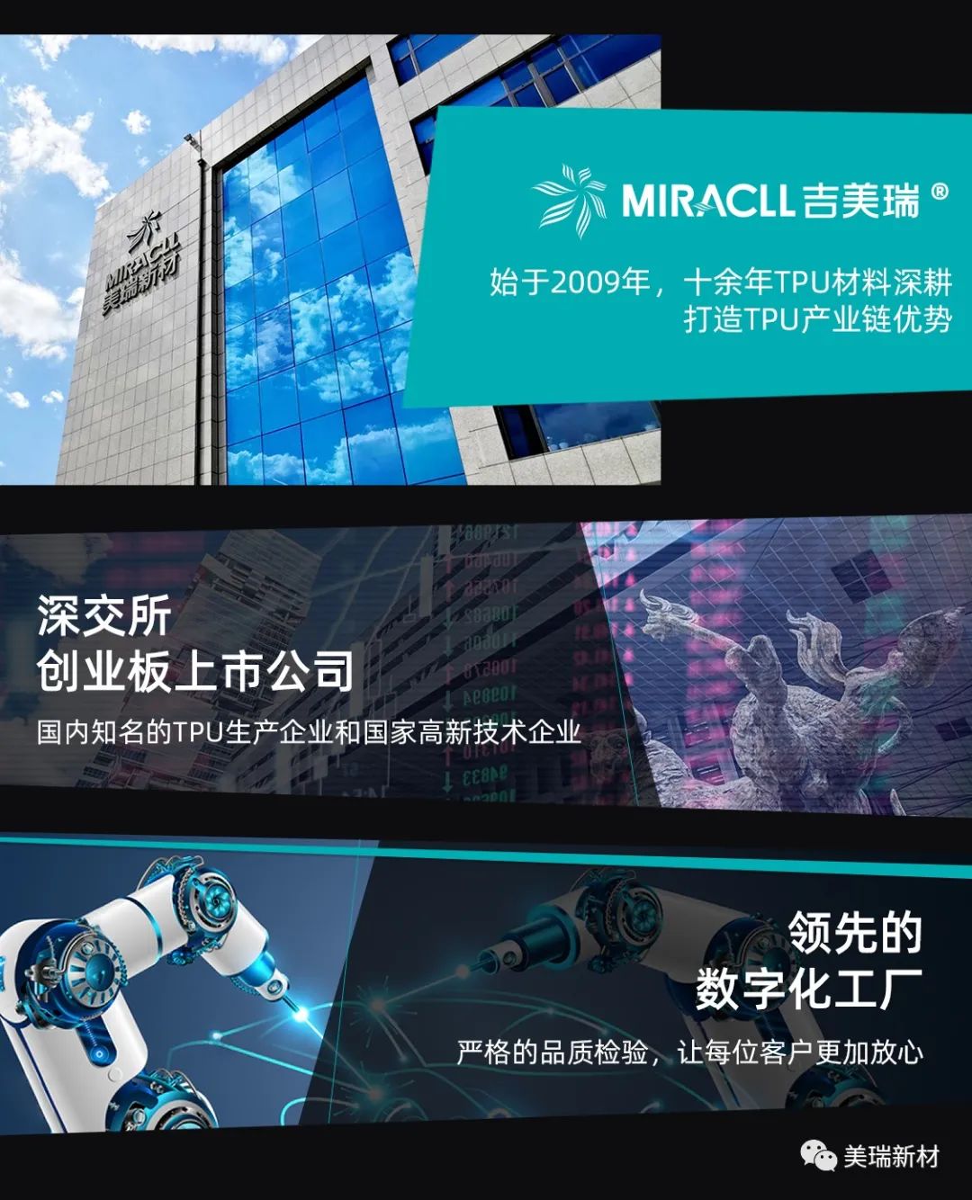 公司专注于热塑性聚氨酯弹性体(TPU)的研发、生产和销售,并聚焦特种TPU的下游开发。经过多年不断的研发创新,目前已打破国外垄断,开发出了拥有自主知识产权的脂肪族不黄变TPU材料及隐形车衣等各类漆面保护膜制品,广泛应用于汽车、电子、家具、鞋材、建筑、风电、航空等领域。