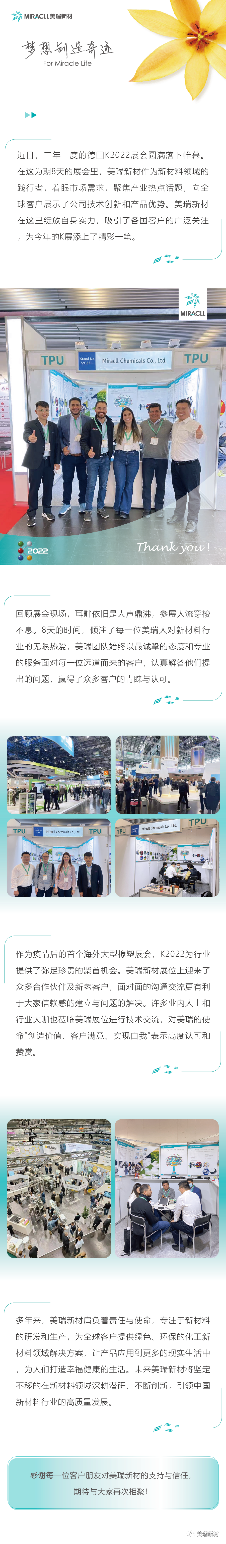 雷火电竞新材料股份有限公司(代码:300848),是国内知名的聚氨酯材料(TPU、PUR、PUD、PU预聚体等)及全生物降解类材料(PBS等)生产企业和国家高新技术企业。产品广泛应用于3C电子、医疗健康、个人护理、汽车制造、运动休闲、工业装备、绿色能源、家居生活、3D打印等领域。