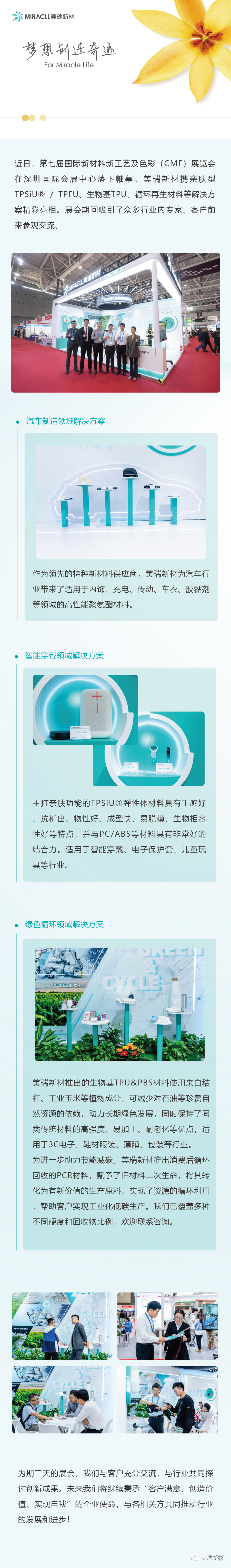 雷火电竞新材料股份有限公司(代码:300848),是国内知名的聚氨酯材料(TPU、PUR、PUD、PU预聚体等)及全生物降解类材料(PBS等)生产企业和国家高新技术企业。产品广泛应用于3C电子、医疗健康、个人护理、汽车制造、运动休闲、工业装备、绿色能源、家居生活、3D打印等领域。